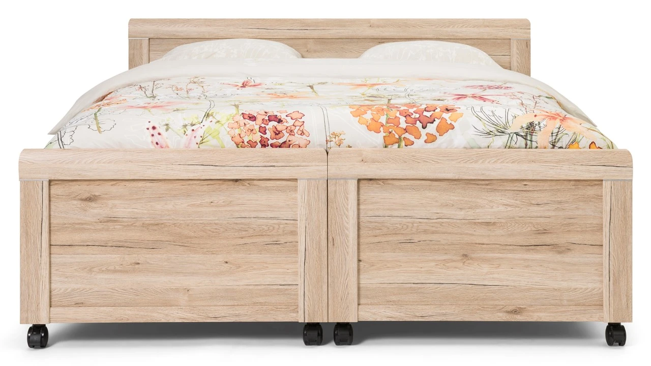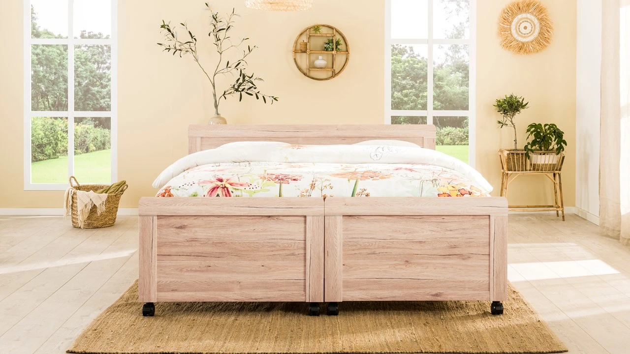 Ga voor comfort en gemak met het Bed Elba uitrijdbaar. Dit bed heeft een prettige hoge instap waardoor je makkelijker in én uit bed kunt komen. Zeker als je last hebt van lichamelijke klachten is dit bed een absolute aanrader. Daarnaast bestaat dit bed uit twee losse eenpersoonsbedden die je uit elkaar kunt rollen. Het bed heeft een minimalistisch design met subtiele rondingen op het hoofd- en voetbord.
