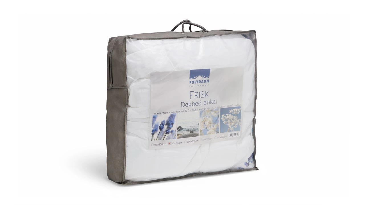 Kruip heerlijk weg onder Dekbed Frisk synthetisch alle seizoenen. Dit dekbed met Isocraft vulling is heel populair door de praktische eigenschappen. Het heeft een zeer goede warmte-isolatie, is veerkrachtig en is blijvend zacht. Daarnaast is het dekbed ook voordelig geprijsd.