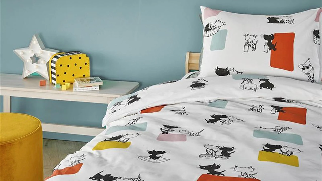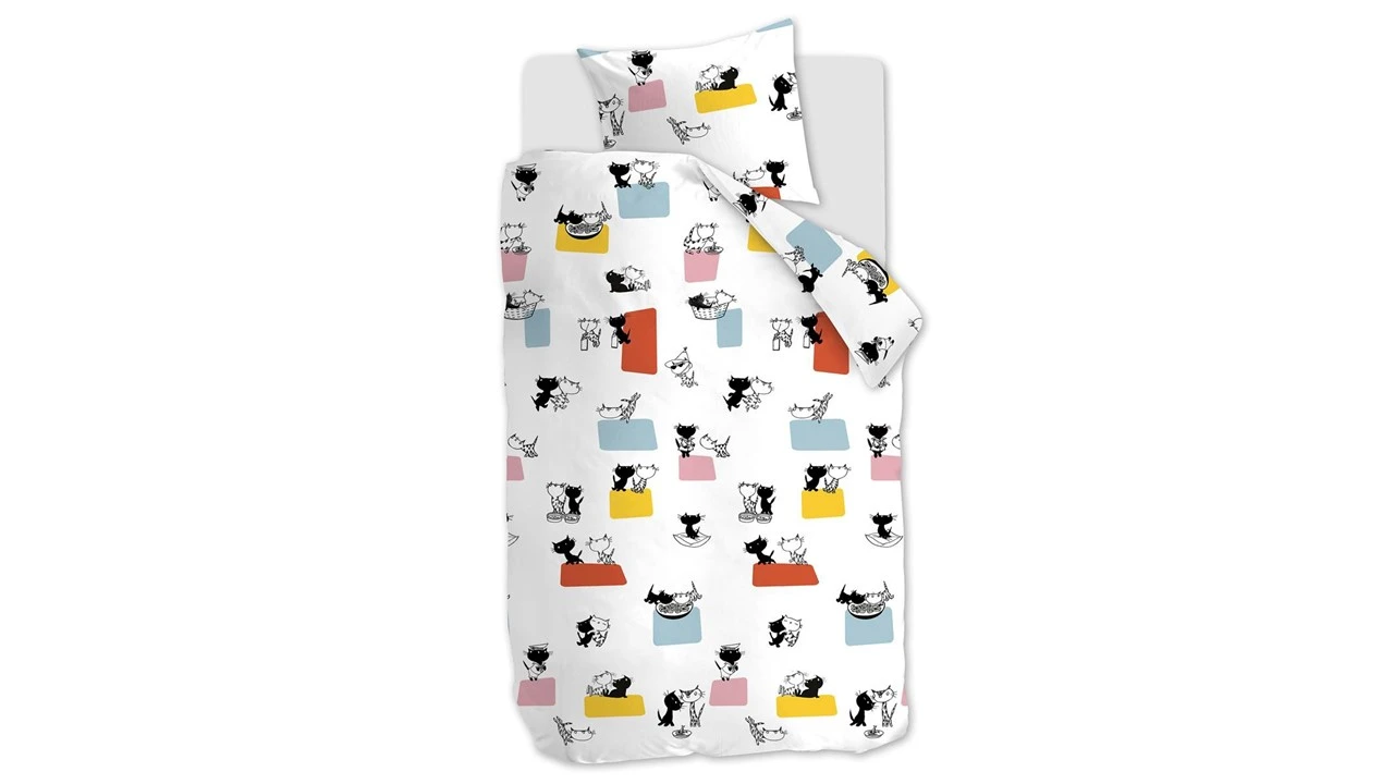 Het vrolijke kinderdekbedovertrek Vrienden laat de prachtige illustraties uit ‘Jip en Janneke’ van Annie M. G. Schmith en Fiep Westendorp zien. Op het overtrek zie je de vrienden Pim en Pom, die samen op avontuur gaan. De kleurvlakken verrijken het speelse overtrek. Dezelfde print komt terug op de kussensloop.
