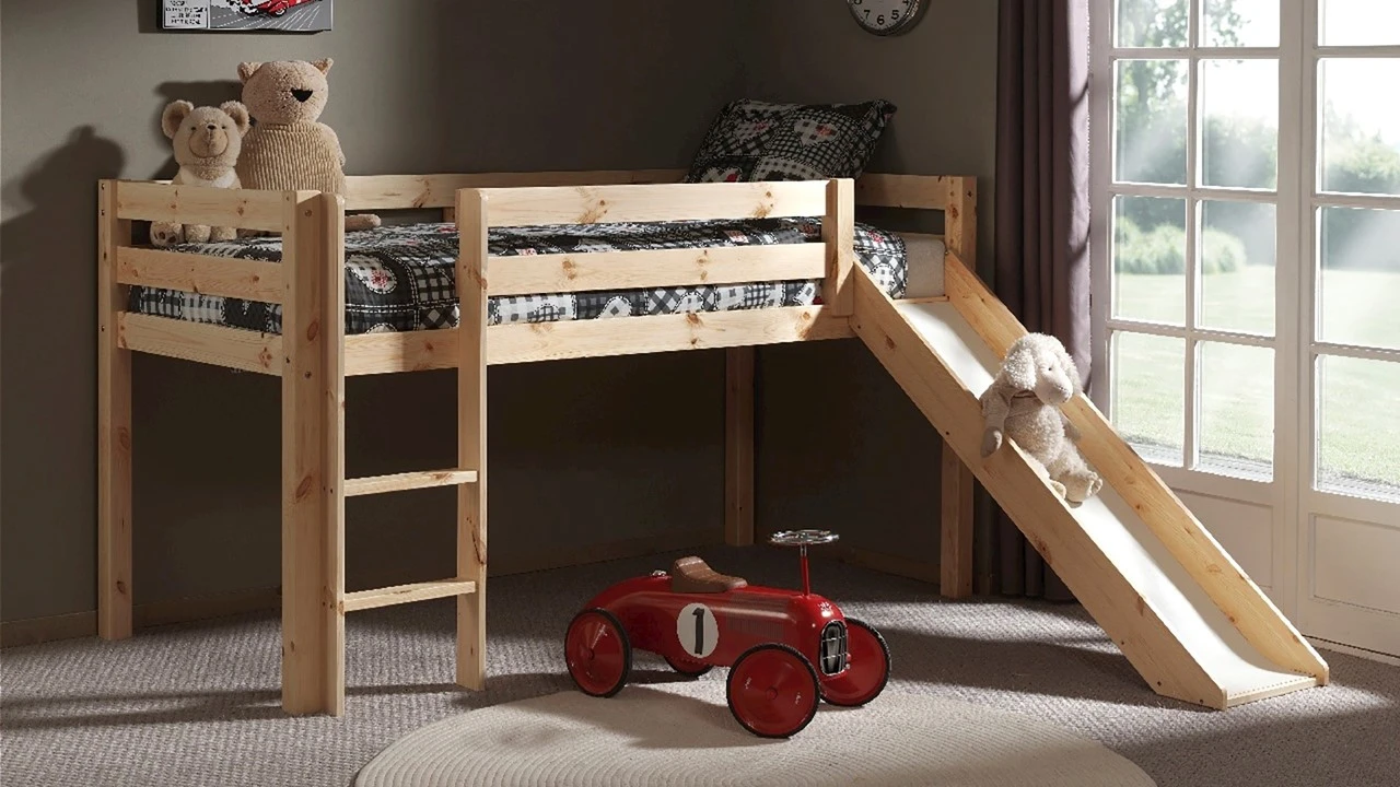 Hoogslaper Pino met glijbaan wordt geleverd inclusief bedbodem, exclusief matras.