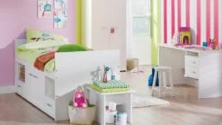Een extra hoge instaphoogte met Kajuitbed Jesse hoog. Voor de wat grotere kinderen/tieners is dat sowieso erg prettig. Maar ook de wat avonturierlijkere kinderen zullen hier helemaal weg van zijn. Daarnaast heeft dit bed ook nog een hoop extra opbergruimte.
