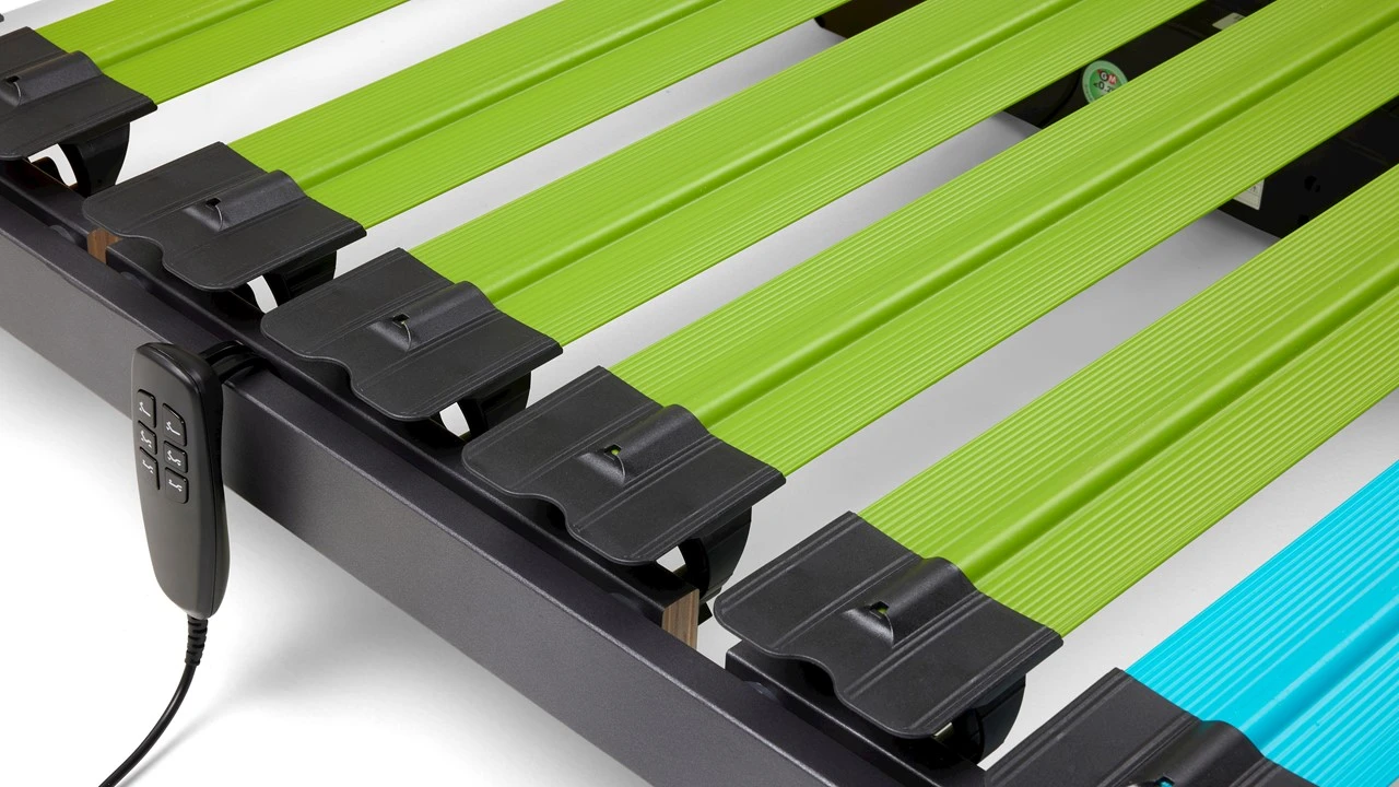 Goed slapen is zo geregeld met de Lattenbodem Emma Click & Sleep x3 elektrisch verstelbaar. Je koopt 1 bedbodem maar kunt switchen tussen 3 verschillende niveaus in slaapcomfort. Deze bedbodem geeft je dus altijd precies de ondersteuning die bij jouw lichaam past. Het comfort kun je heel eenvoudig aanpassen van soft, naar medium of hard door de fiberglas latten in de juiste volgorde te klikken. De gegroefde structuur van de latten zorgt er ook nog eens voor dat je matras niet gaat schuiven.
