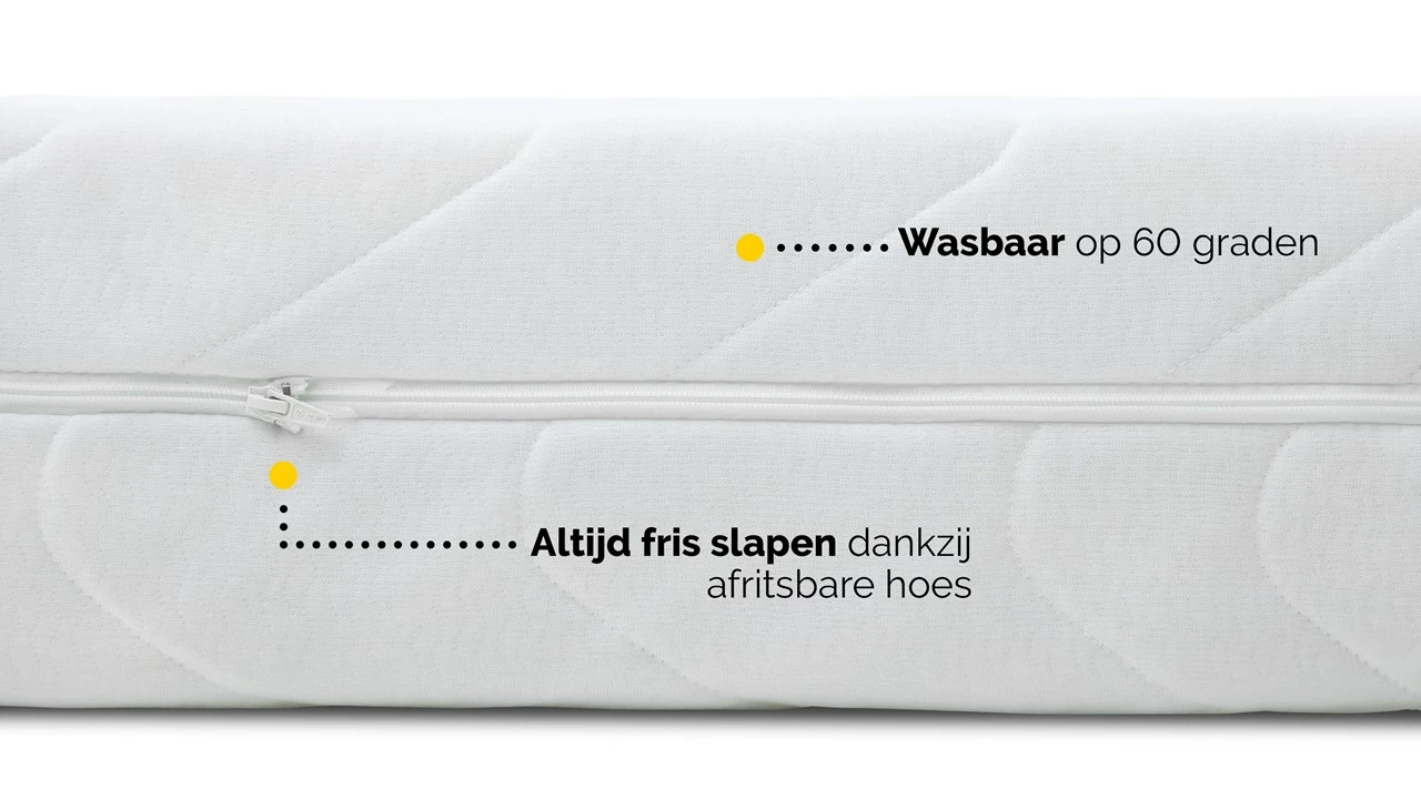 De tijk (matrashoes) is sterk en behoudt goed haar vorm, dit komt doordat het gemaakt is van 100% polyester. Met behulp van de rits maak je hem gemakkelijk los om op maximaal 60°C te wassen in de wasmachine. Dit zorgt keer op keer voor een frisse nachtrust!