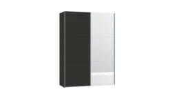 Geen poespas of tientallen verschillende opbergvakken, gewoon Schuifdeurkast Easy met spiegel. Door het gebruik van eenvoudige kleuren past de garderobekast in iedere slaapkamer. De kast is gemaakt van spaanplaat melamine. De indeling van de kast kun je vinden onder het kopje ‘Kenmerken’. De garderobekast is ook verkrijgbaar als Schuifdeurkast Easy.