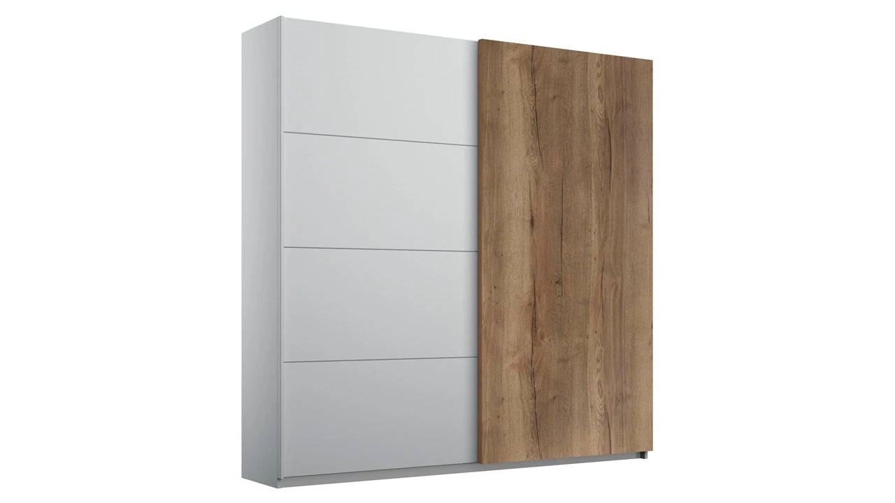 Maak je slaapkamer helemaal compleet met deze Schuifdeurkast Halifax. Deze kast heeft dezelfde strakke en industriële uitstraling als de rest van de Halifax meubelen. De garderobekast is gemaakt van meubelplaat. De indeling van de kast kun je vinden onder het kopje ‘Kenmerken’. De garderobekast is ook verkrijgbaar als Schuifdeurkast Halifax met glaspanelen.