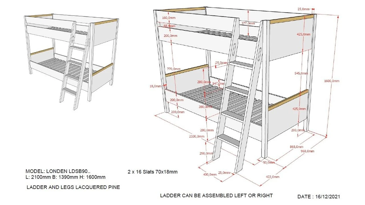 Stapelbed Londen wordt geleverd inclusief bedbodems, exclusief matrassen.