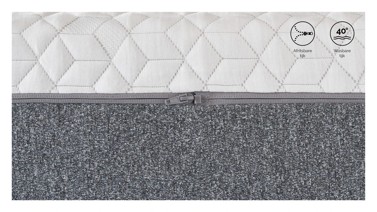 De tijk (matrashoes) is soepel en heeft ademende eigenschappen. De tijk is afritsbaar en wasbaar op 40°C graden.